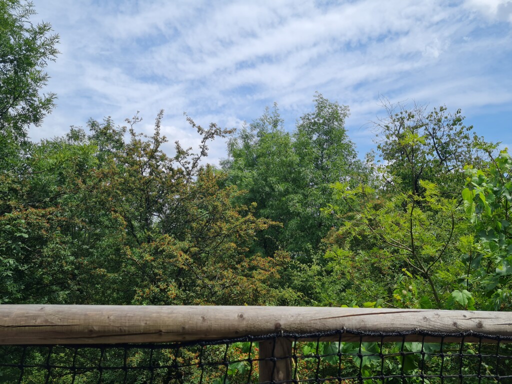 En het uitzicht vanuit de hut, groen! Eerder vandaag en gisteren wat korte zomerbuitjes, dus alles ruikt heerlijk. Veel beter dan in dat hete Kut!