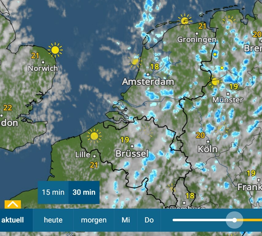 Hier weer mooi weer in het westen. Gisternacht viel er nog een buitje 1,4 mm, wat het totaal brengt op 4,6 mm de voorbije 7 dagen, dus best droog en zonnig hier de voorbije week.