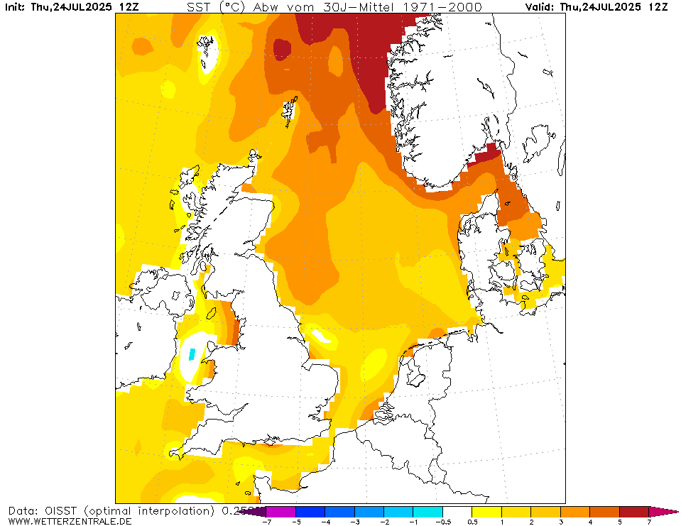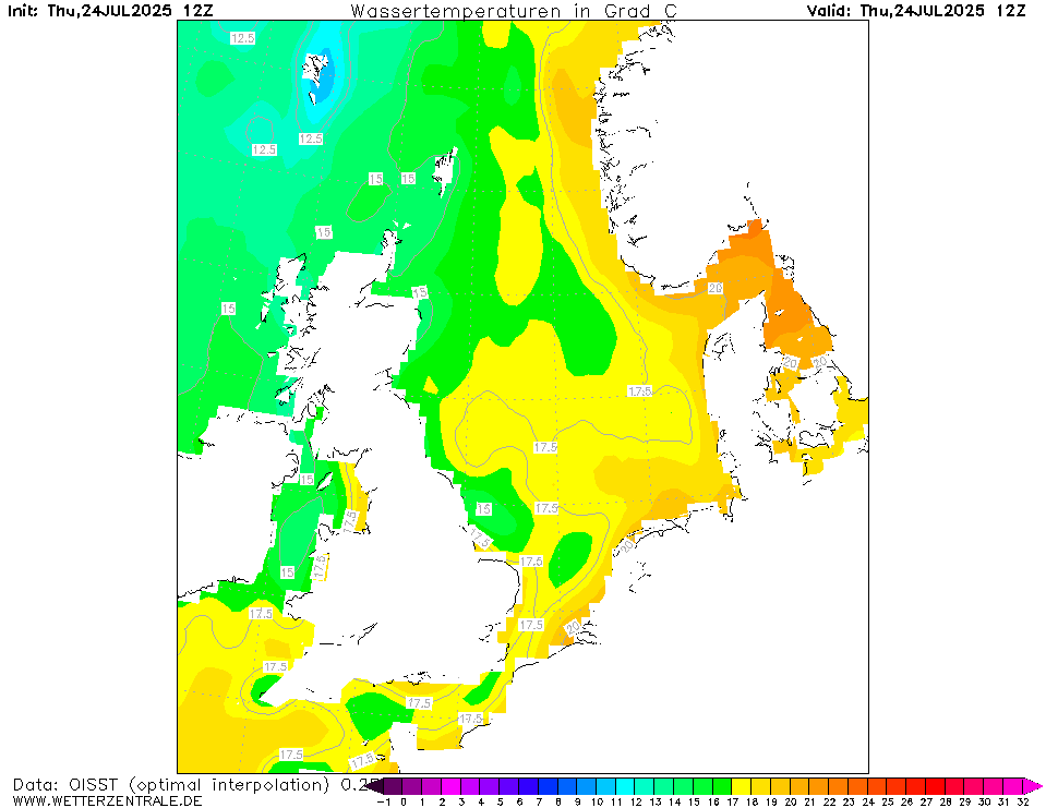 Zegt eerder iets over het warme zeewater dat er nog steeds 20°C gehaald is aan zee met deze koelere noordwester. Met normale water temperaturen ging 18°C al moeilijk zijn daar.