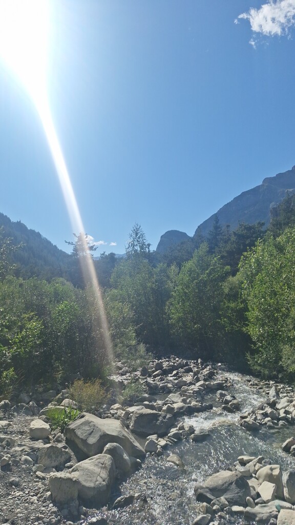 Temperatuur iets ondermaats, graad of 25 redelijk wat wind, lucht is echt staal blauw. We zitten trouwens in de Alpes/Provence omgeving Barcelonnette. Wat een ongelooflijke natuur. Nachten zijn fris graad of 12 op 1100 meter hoogte.