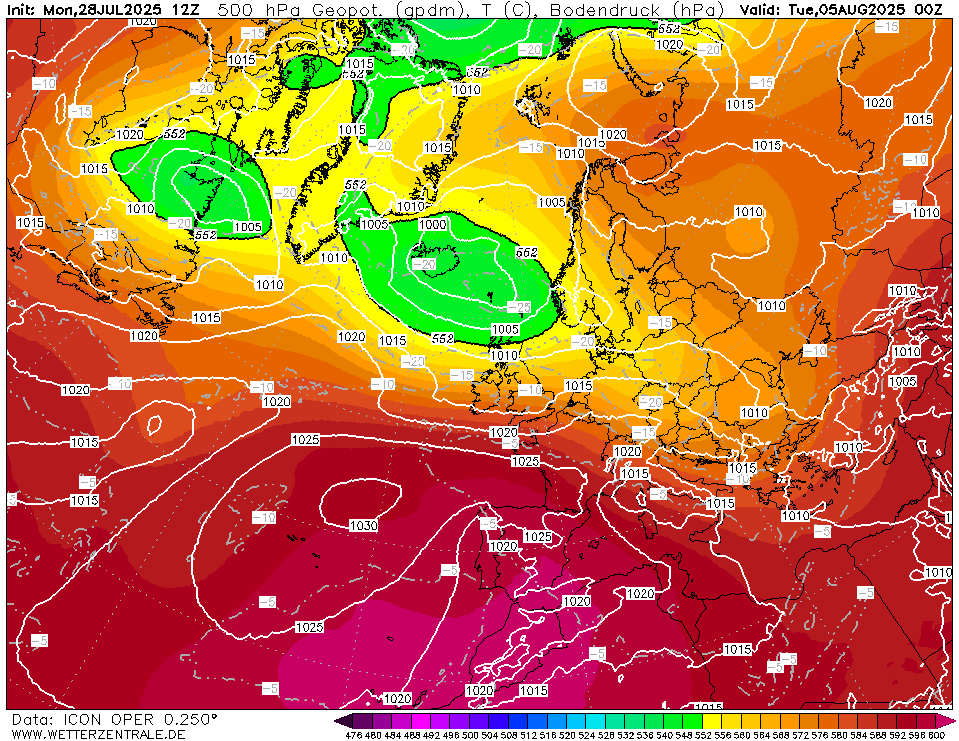 Icon en GFS laten de straalstroom weer wat zuidelijker zakken volgende week, met als resultaat dat er zich een depressie ontwikkeld die volgende week over Groot Brittannië en later misschien Nederland kan gaan trekken.