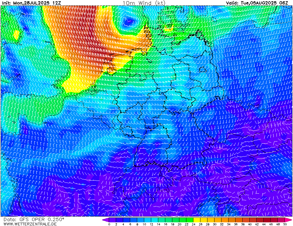 GFS laat het tot een stormdepressie aansterken met zelfs een 10 bft buitengaats, maargoed het is nog heel ver weg.