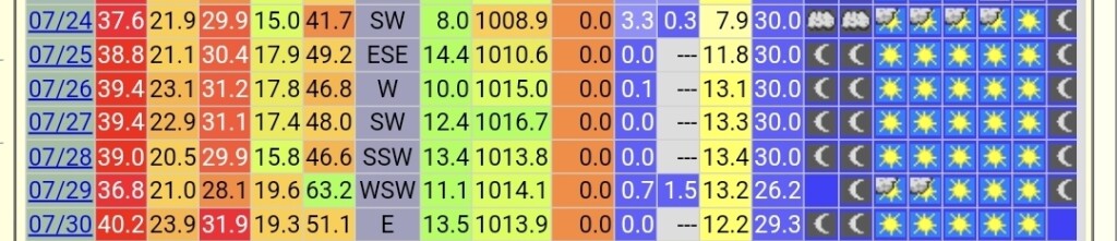 Waarbij de Tx van 36,8 (Sevilla) gisteren in Córdoba 37,5°C wist te bereiken.