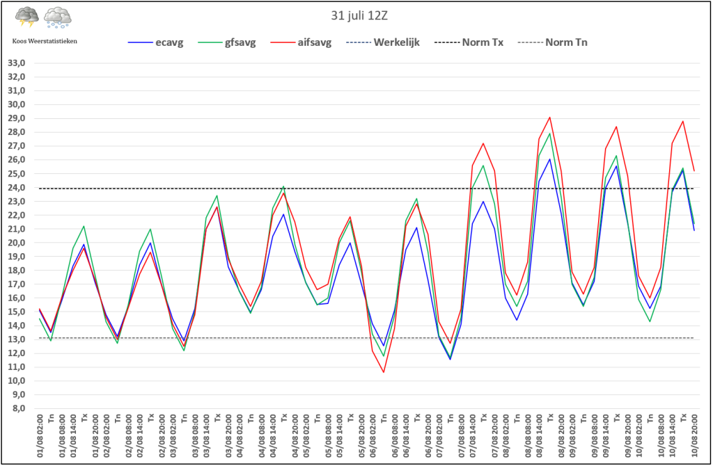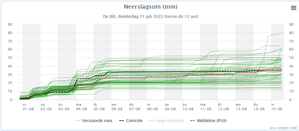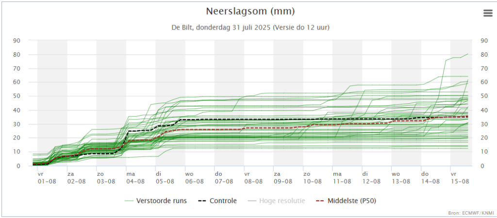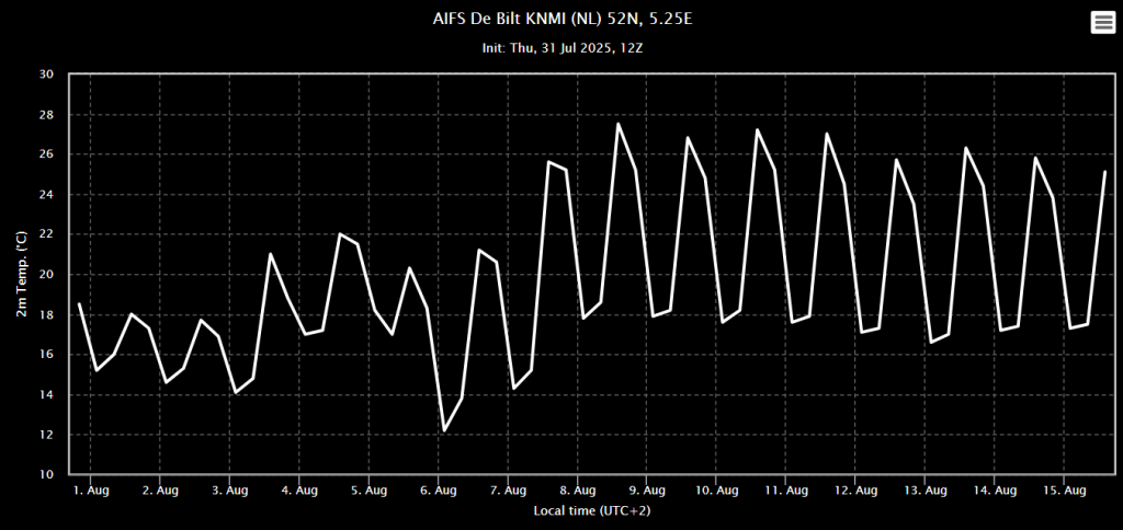 Het gemiddelde van AIFS ziet een wat langere periode met volop zomerweer wel zitten.