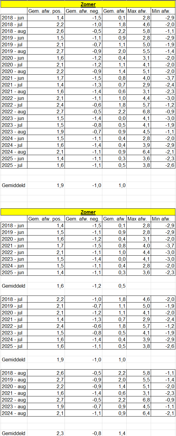 Overzicht gerangschikt per seizoen (zomer in dit geval)