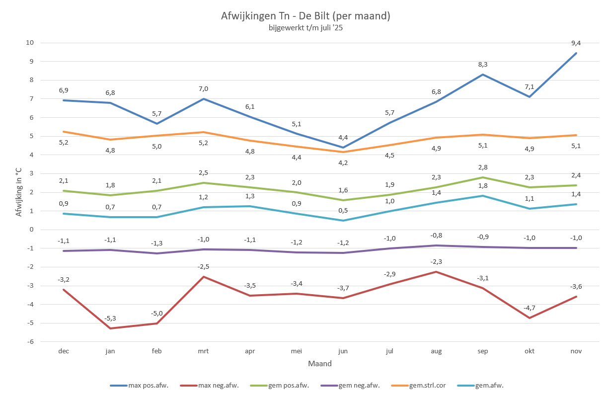 Overzicht alle Tn gerelateerde afwijkingen per maand.