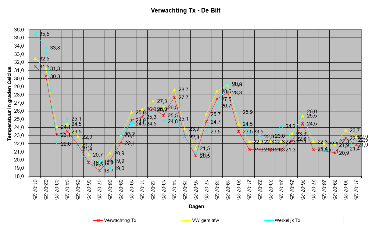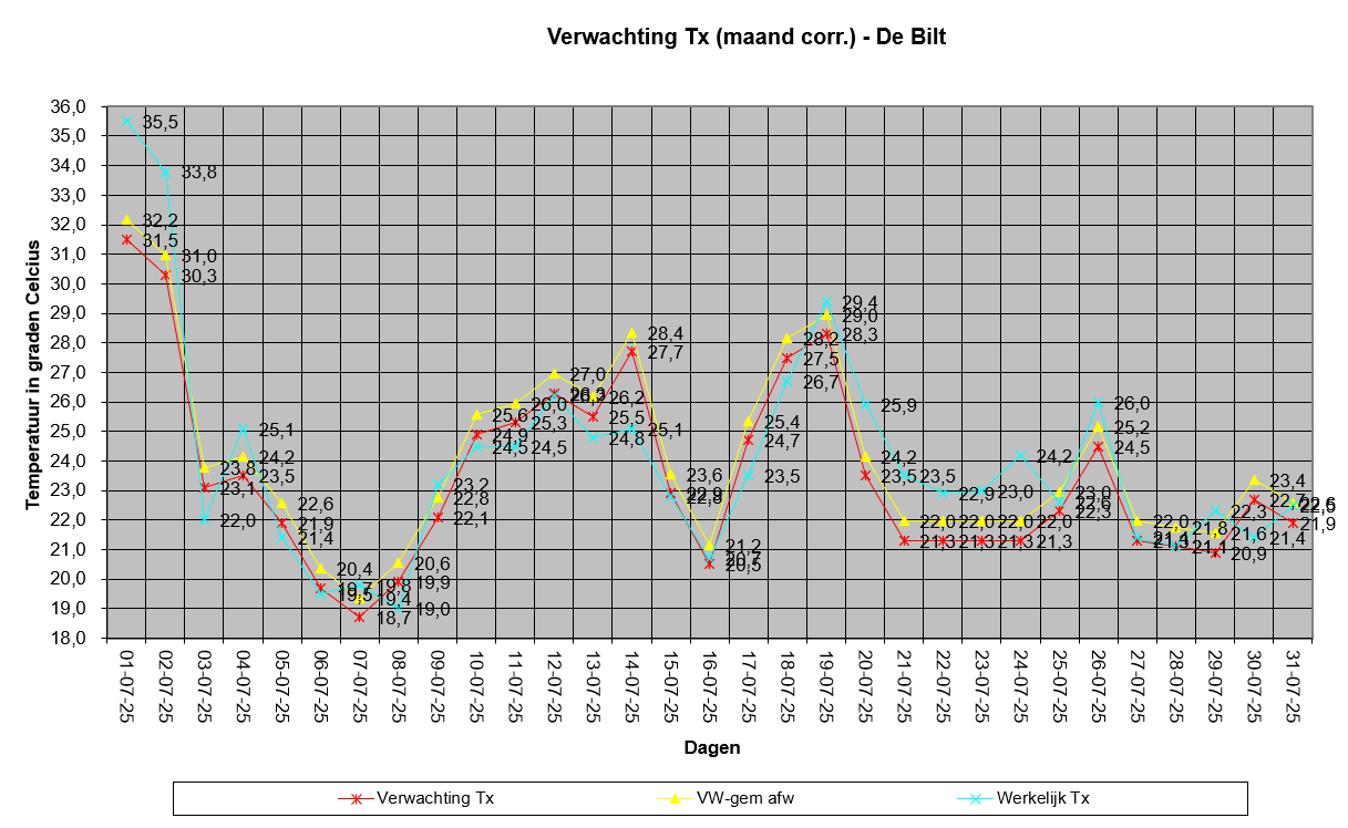 Gem. DMO -vs- meest waarschijnlijke Tx -vs- werkelijke Tx (juli '25)