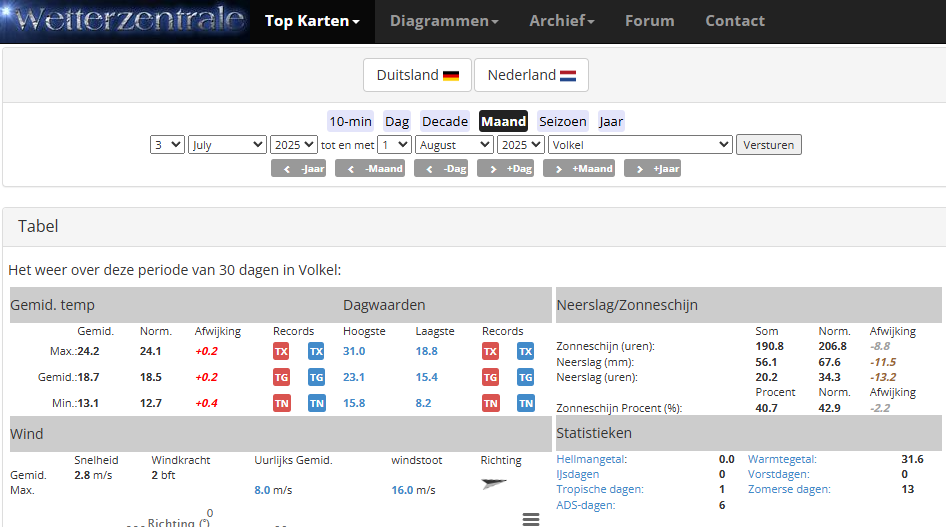 De laatste 30 dagen in Volkel hebben anders nauwelijks iets van zomer laten zien, laat staan een hoogzomerse periode. Met bovendien 17 neerslagdagen in 30 dagen tijd. Tel daarbij op dat de eerste decade van juni ook nat en koel verliep. Dan is het merendeel van de zomer toch alweer tegenvallend te noemen tot zover. Daarom ga ik volgend jaar opnieuw een week of misschien twee naar een klimatologisch betere plek met een boeiende historie en cultuur.