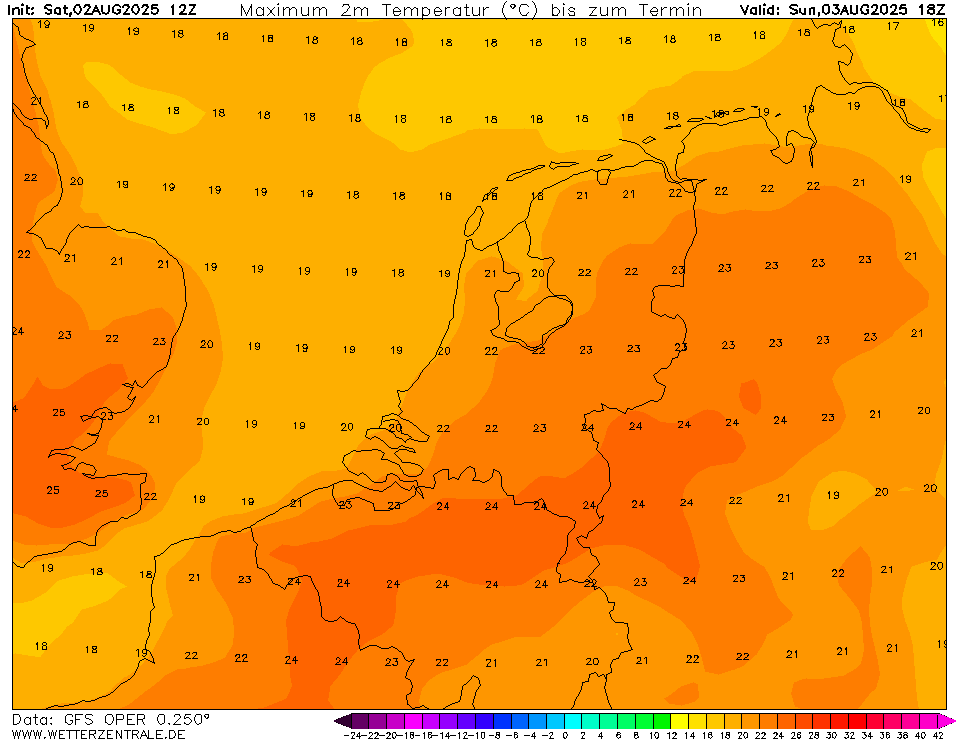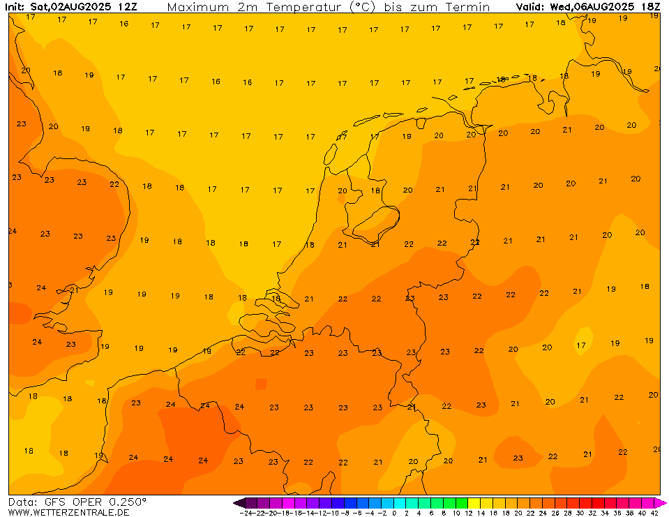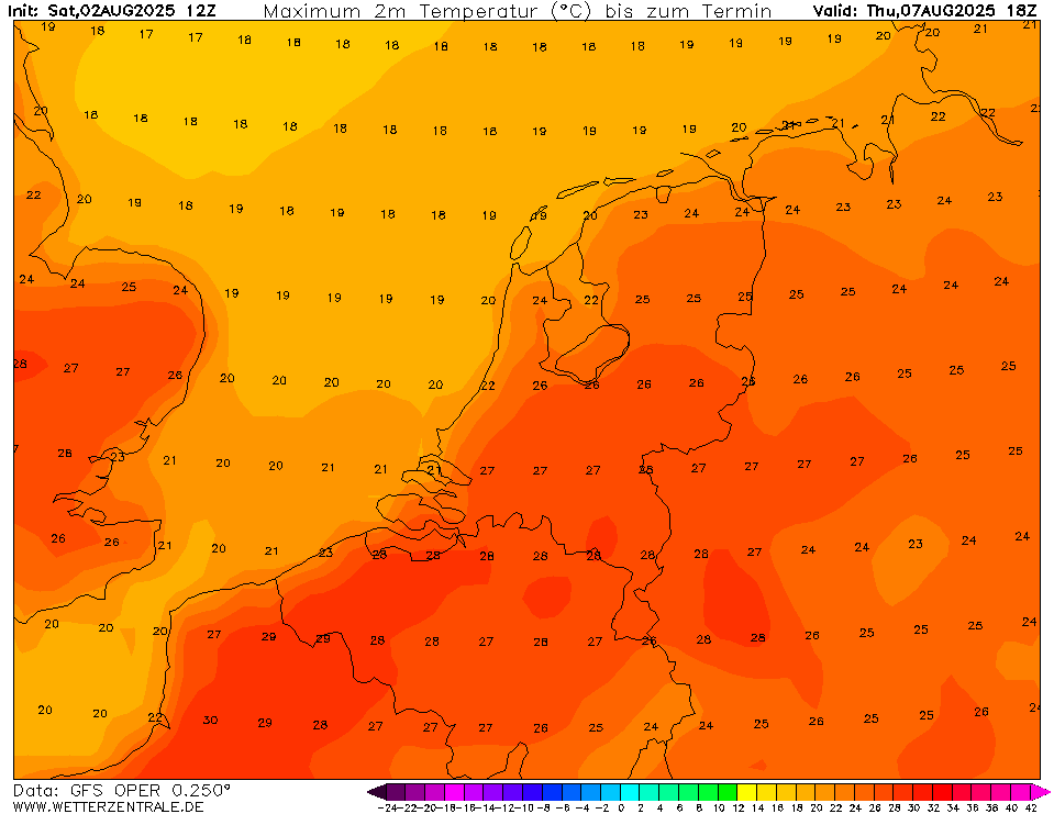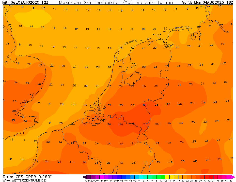 Maandag in het midden en zuiden op veel plaatsen een zomerse dag volgens de oper. Vanaf 7 augustus gaat de temperatuur sterk in de lift.