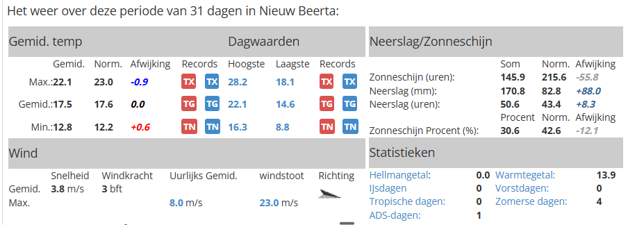 De afgelopen maand was het hier behoorlijk behelpen met de zonneschijn. Ook niet goed voor de paneelopbrengst...