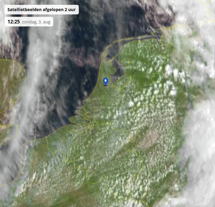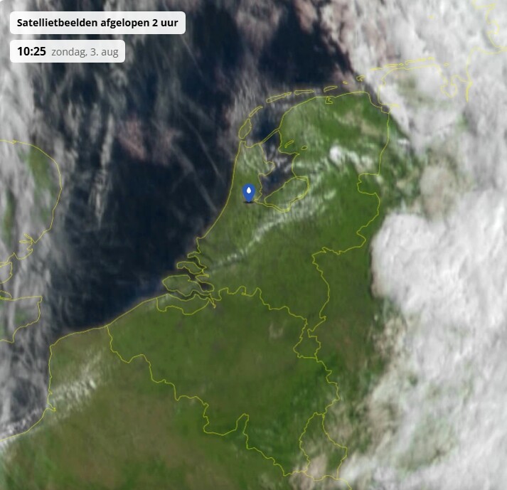land inwaarts, mooi te zien. Hier in het westen nog volop zonnig voordat het front vanmiddag binnen loopt.