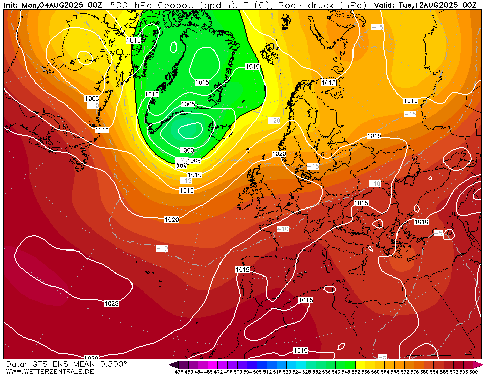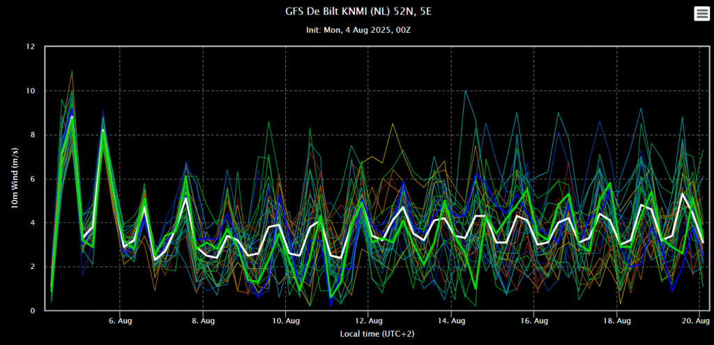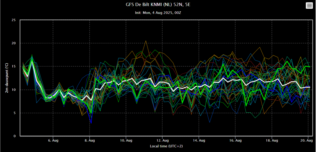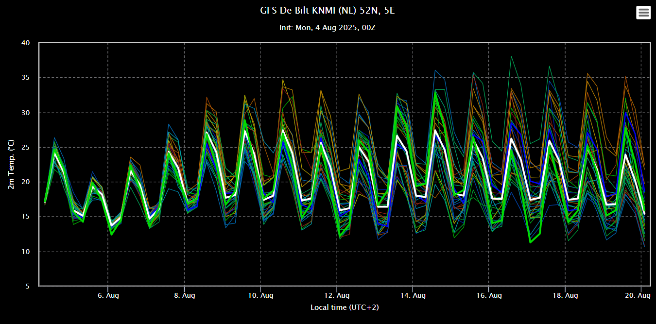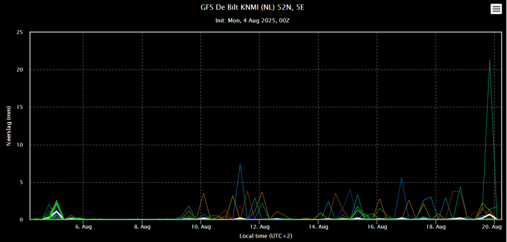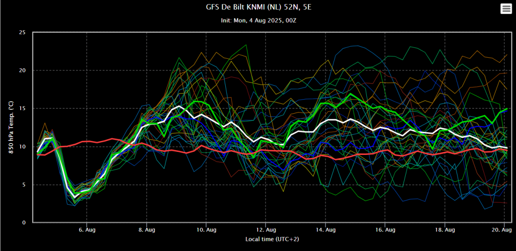 Oper dit keer goed in lijn met het ensemblegemiddelde. Op 13 en 14 augustus 2 uitschieters.
