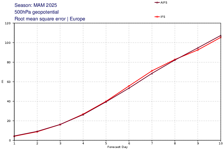 Naar mijn weten vervult AIFS dezelfde functie, namelijk middellange termijn verwachtingen. Over maart-april-mei scoorde AIFS praktisch gelijk aan het numerieke ECMWF voor wat betreft geopotentiaal.