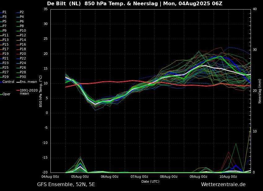 Ongeveer helft van de leden gaat tot 15 graden en hoger qua T850