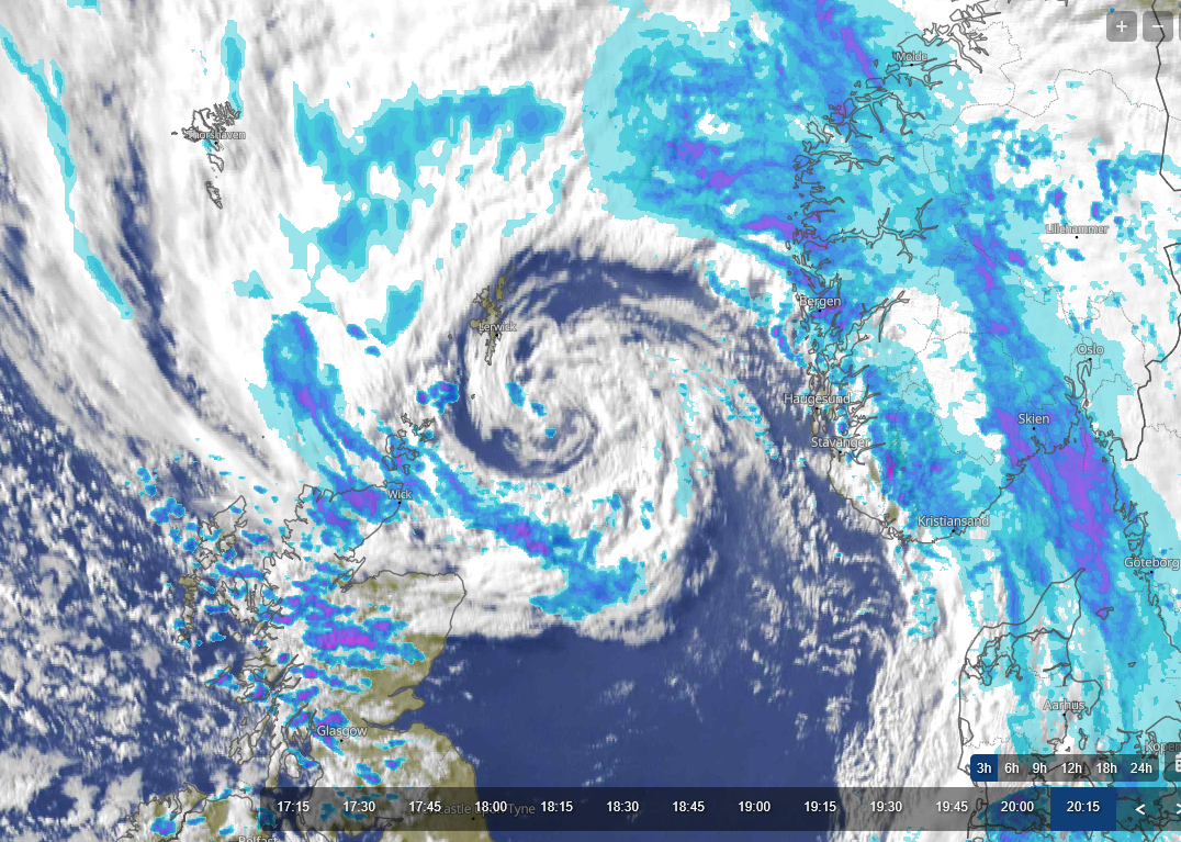 Morgenochtend komt de storm bij zw Noorwegen aan