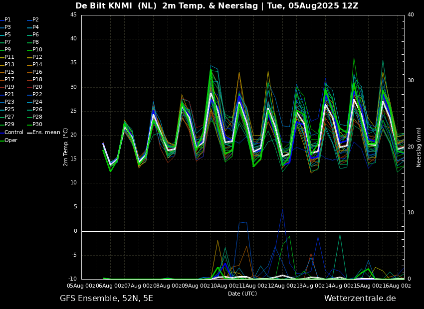 Oper versus ensemblegemiddelde de komende 10 dagen