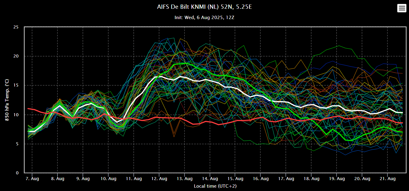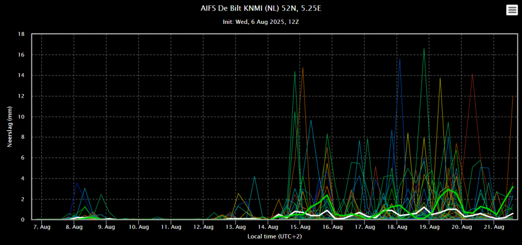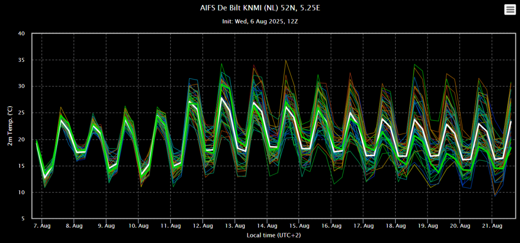 Eerst een weekje heerlijk genieten van mooi weer. Daarna lijkt het onstabieler te worden bij AIFS. Met nog wel aangename temperaturen.
