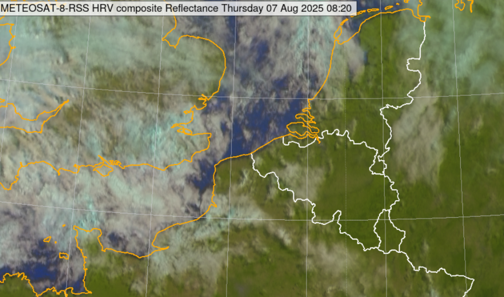 Hier in Diest ruime tijd zonnig. Enkel vanmorgen wat meer middelhoge bewolking gehad. Groot gedeelte van de Benelux heeft nu "zonnige perioden", zoals uit onderstaand satellietbeeld blijkt: