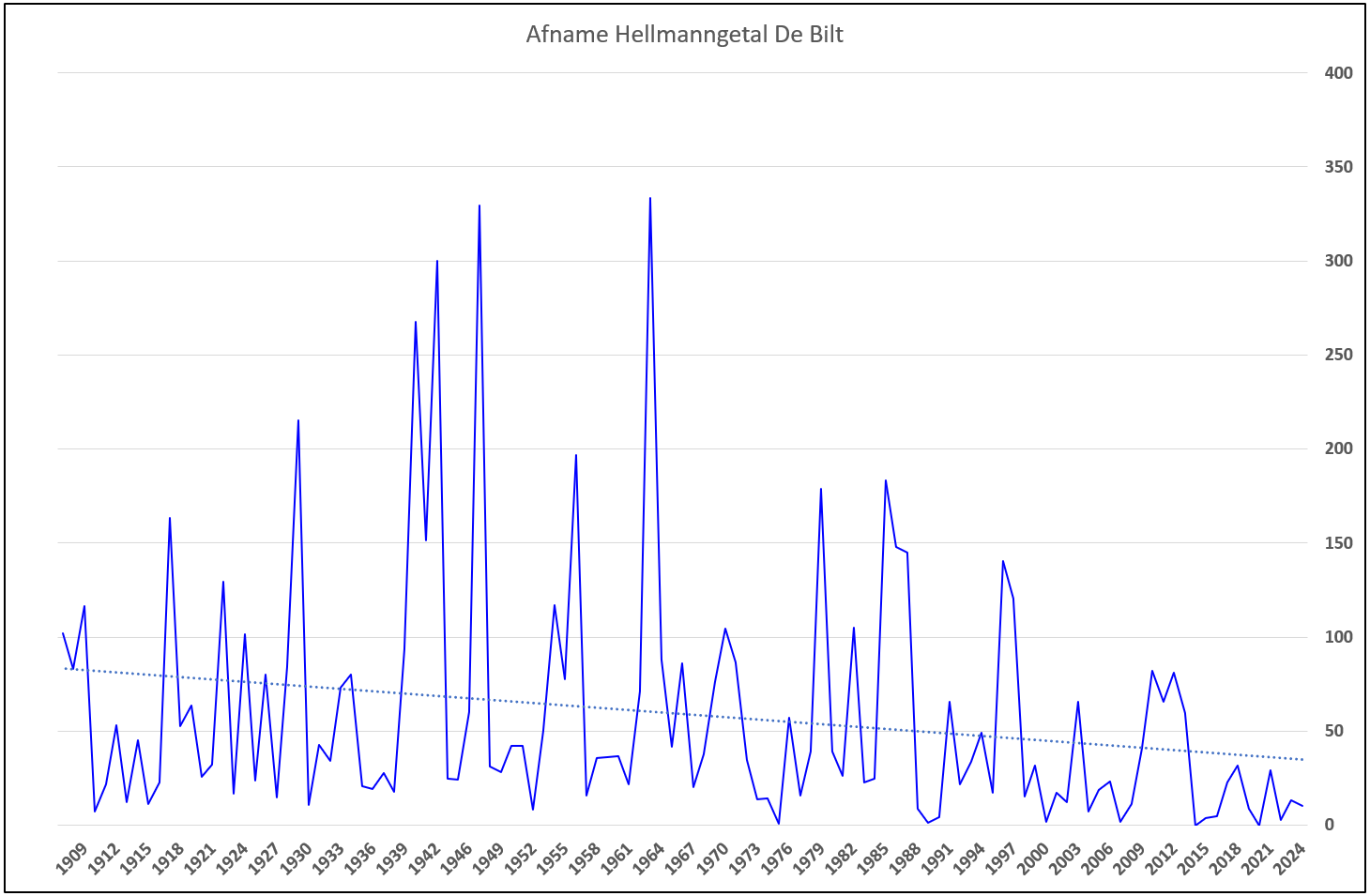 Nee, in dit geval laat ik excel de trendlijn berekenen
