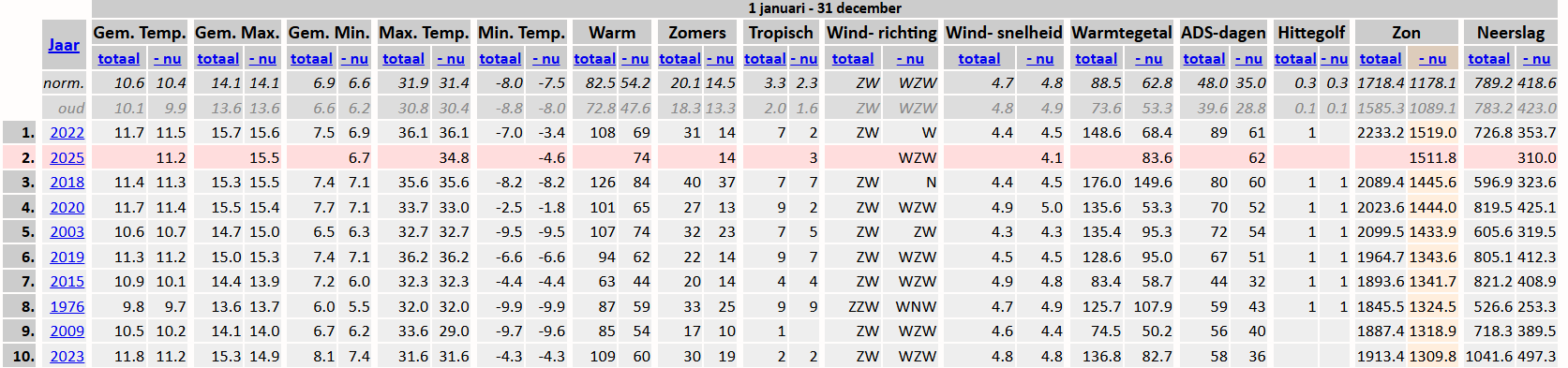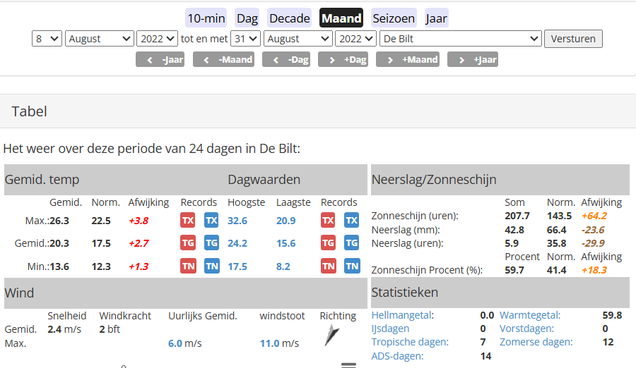 Tenminste wanneer we kijken naar de 5 hoofdstations. De Bilt staat nog wel steeds boven 2022.