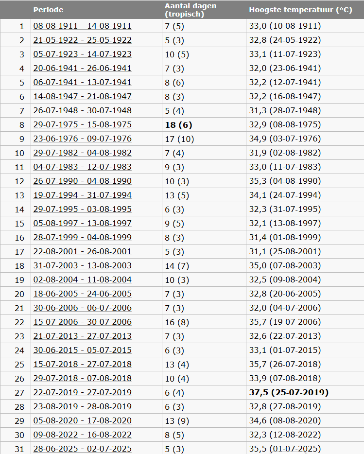 Ook 2018, 2006 en 1941 presteerden het om 2 hittegolven in 1 jaar te scoren in De Bilt.