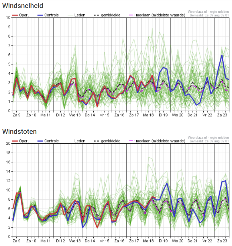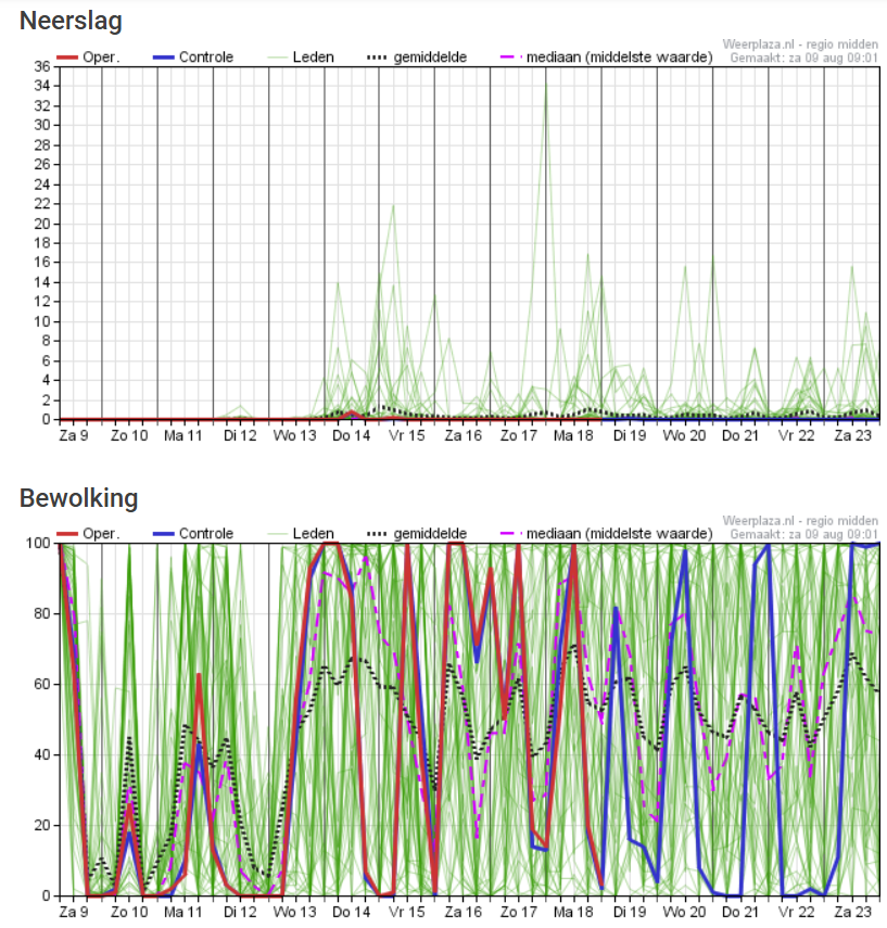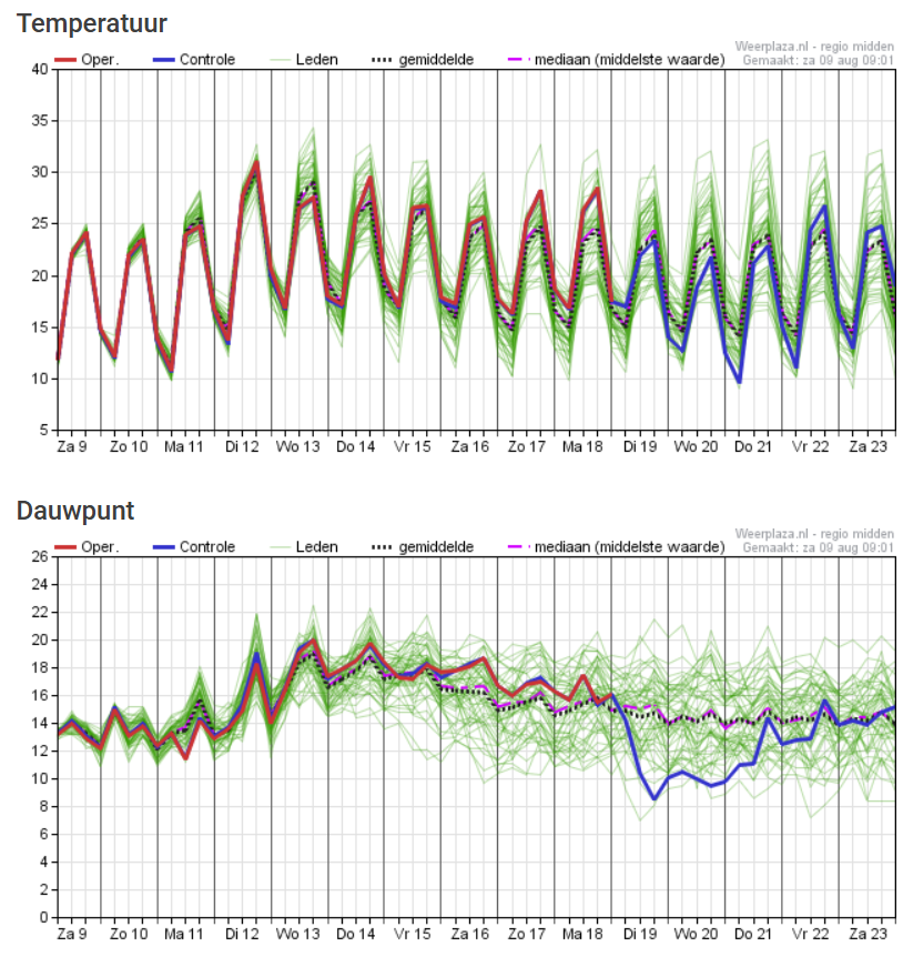 De gehele termijn een pluimgemiddelde (tmax) van minstens 25 graden