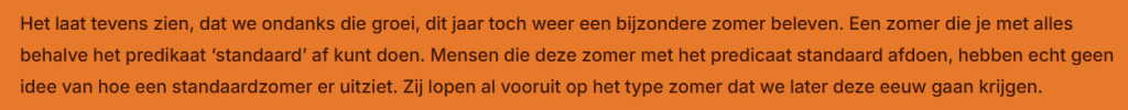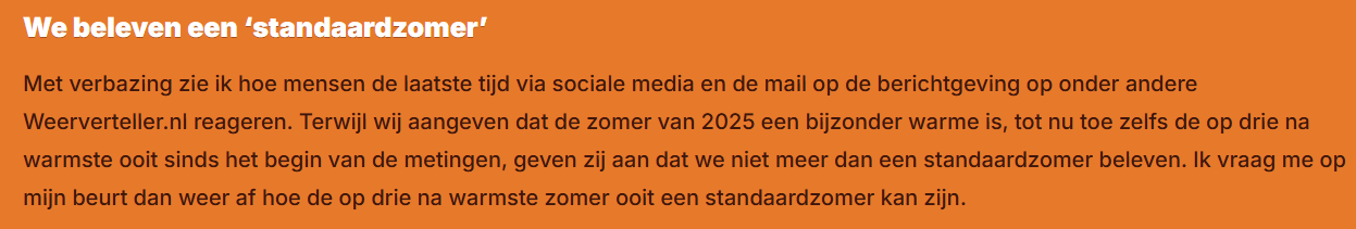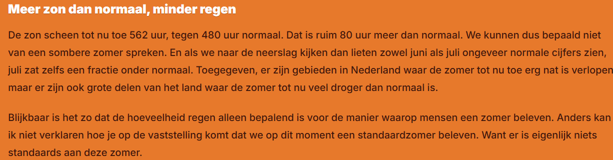 Ook niet benoemen dat we in de kernzomer (afgelopen 38 dagen) totaal geen extreem warm weer hebben gehad deze zomer.