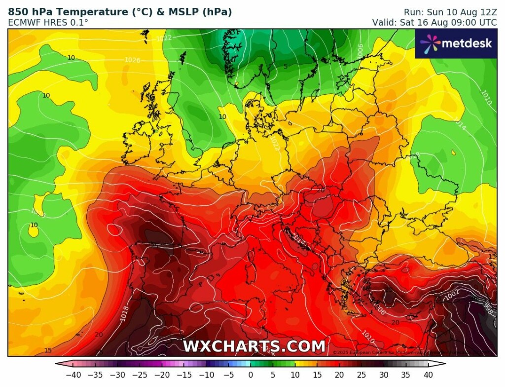 Hogedruk kern ligt bij EC dus wat westelijker dan bij UKMO, bij ons dan een verkoelend briesje vanuit het noorden. Daarbij geen neerslag.