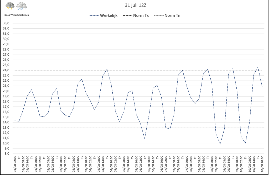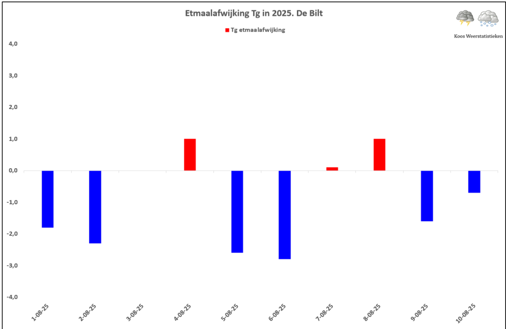 Koele 1e decade van augustus. Tg De Bilt. Vrij zonnig en vrij droog.
