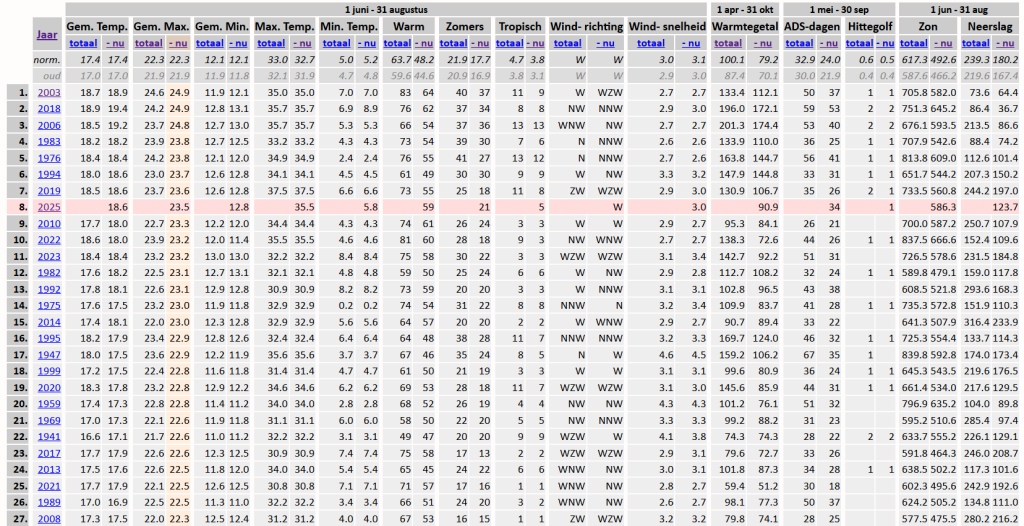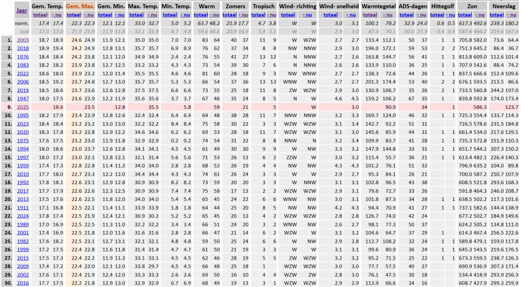 Aan het eind van de zomer staat de zomer van 1959 op een 15e plek. Er staat 16 in het schema, maar 2025 is nog steeds een "tussenstand".