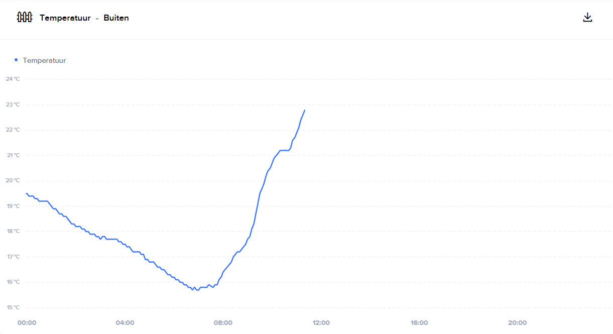 Grafiek loopt iets achter op de actuele temperatuurmetingen. Warmt nu snel op met de zon vanuit het zuiden