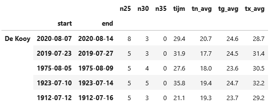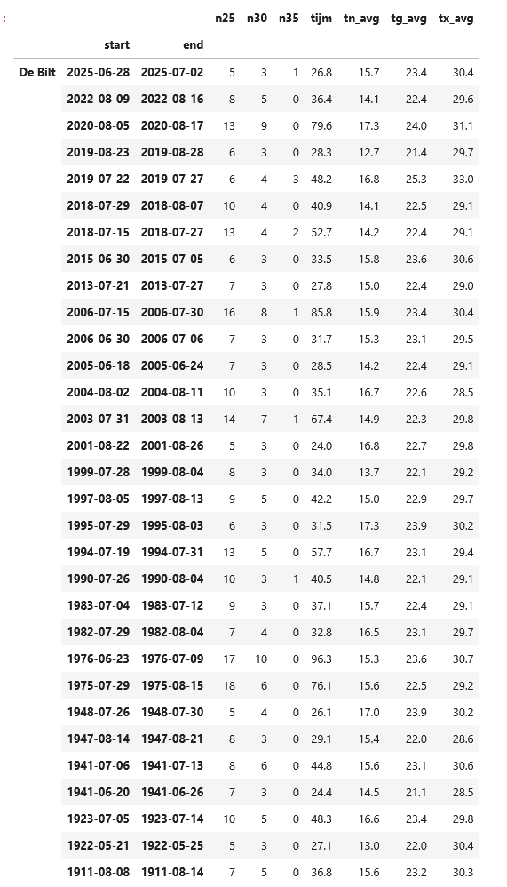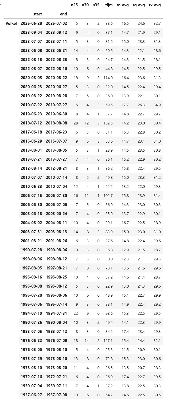 Voor de hele beschikbare reeks 31 voor De Bilt, 5 voor De Kooy en 42 voor Volkel.