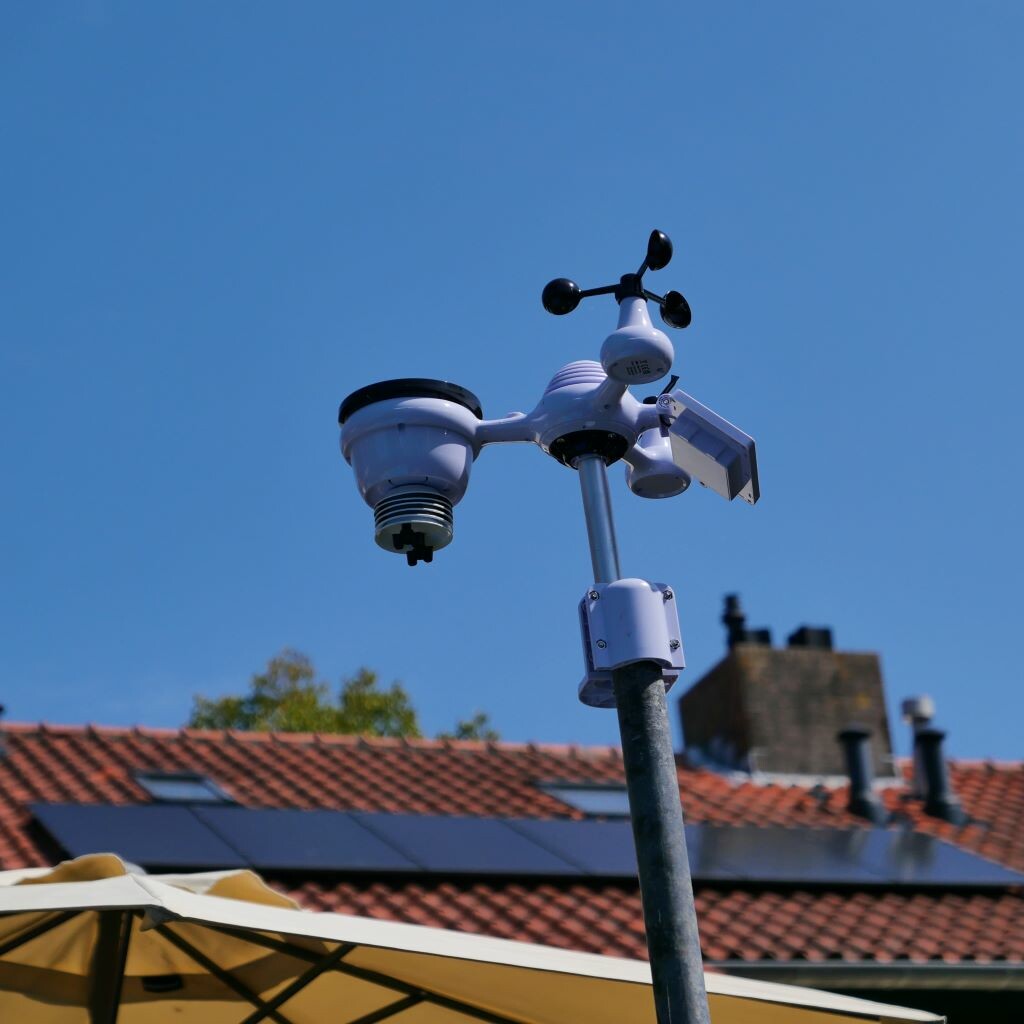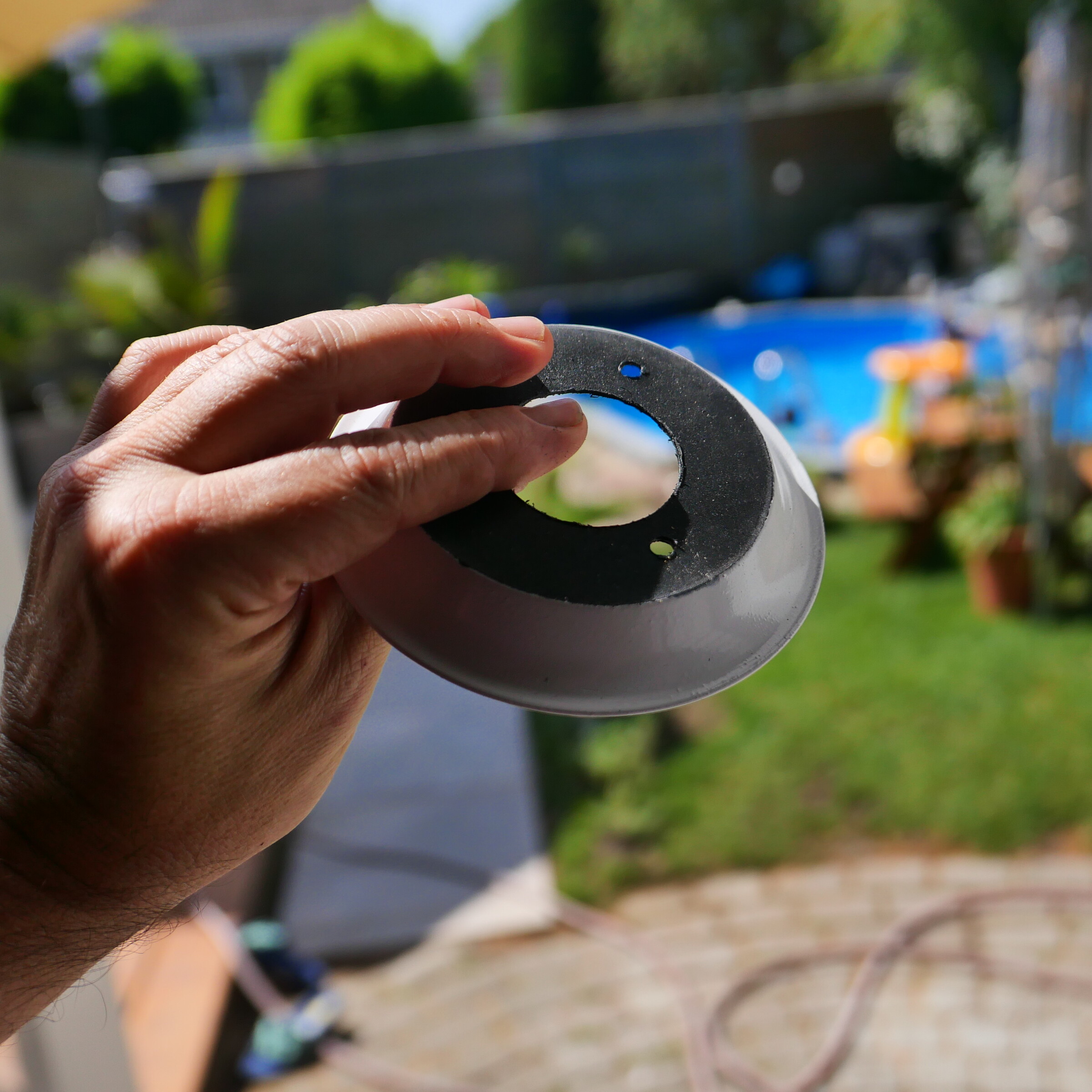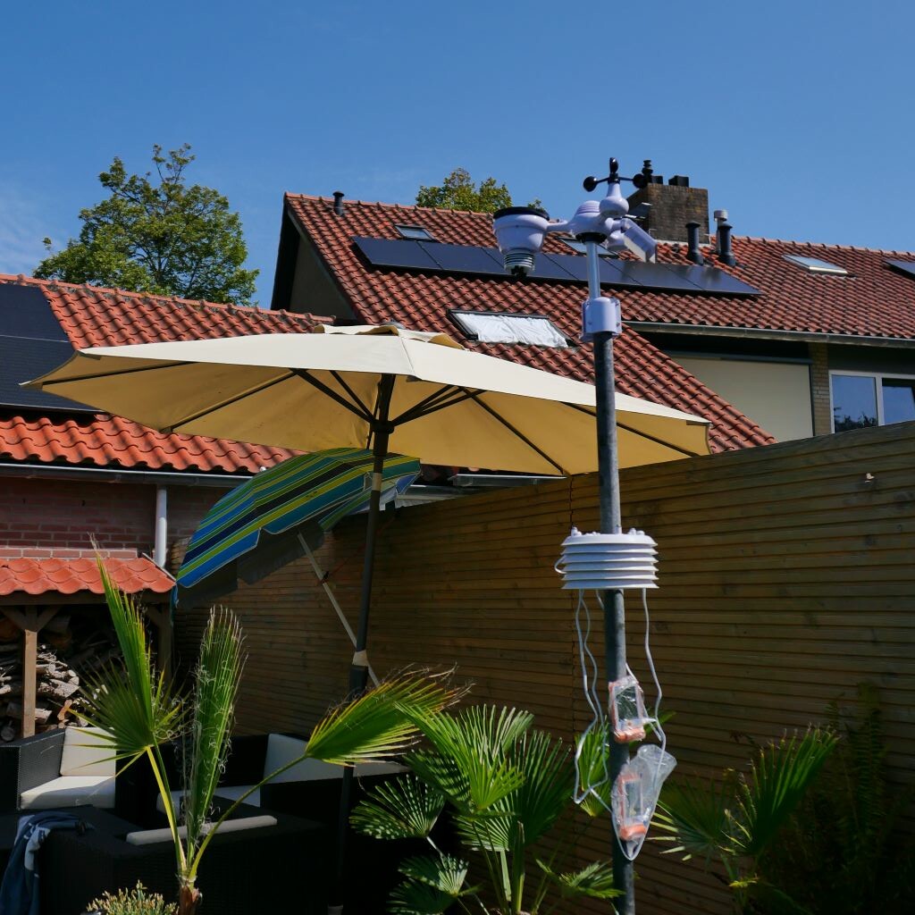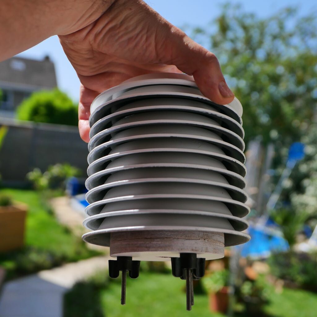 Hutje dat hang zit met schroeven vast die precies op de foto de lamellen wat naar beneden drukken. Ik was er wel klaar mee en in de tuin maakt het me niet veel uit. Alleen leuk dat sinds dat kleine hutje eromheen zit we ineens lager meten overdag dan in de Davis hutten.