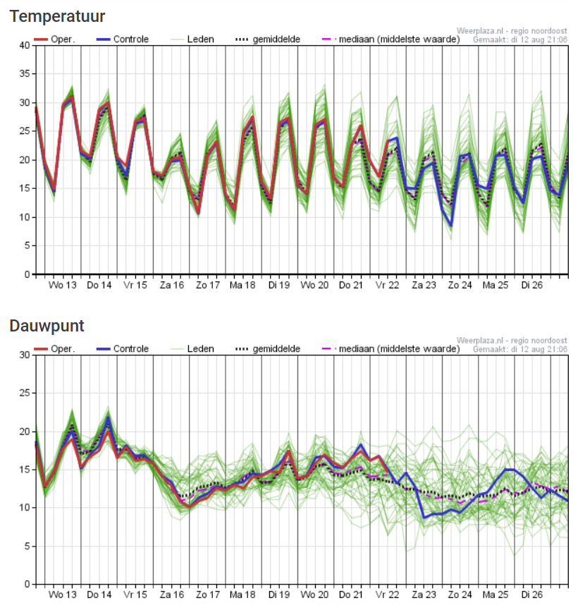 EC pluim 12Z. Noordoost-Nederland. Volop zomerweer