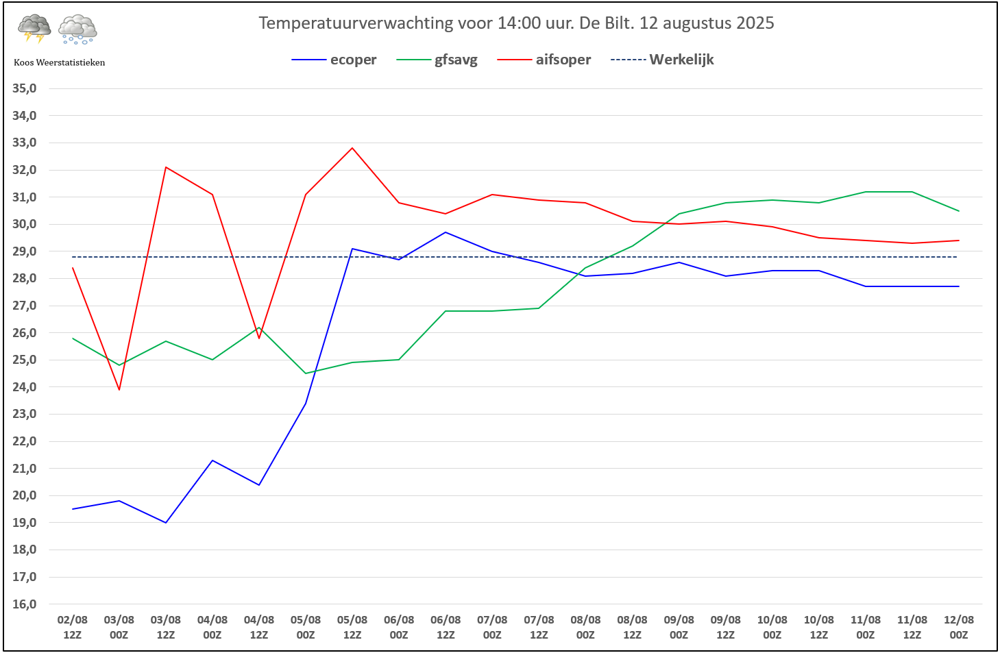Gem. afwijking laatste 14 pluimen: EC 0,6 °C, AIFS 1,5 °C, GFS 2,1 °C