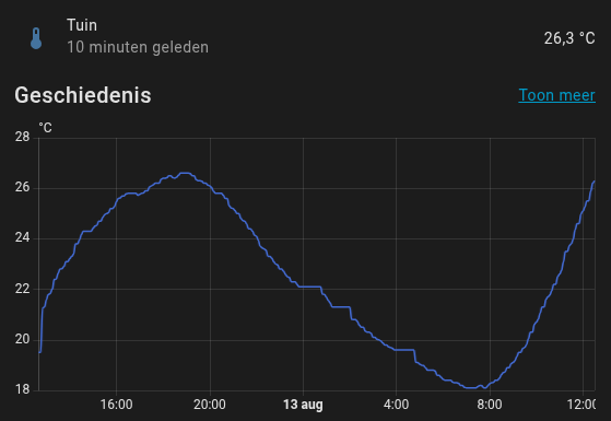 Grafiek is van 10 minuten geleden was 26,3°C nu is 26,7°C.