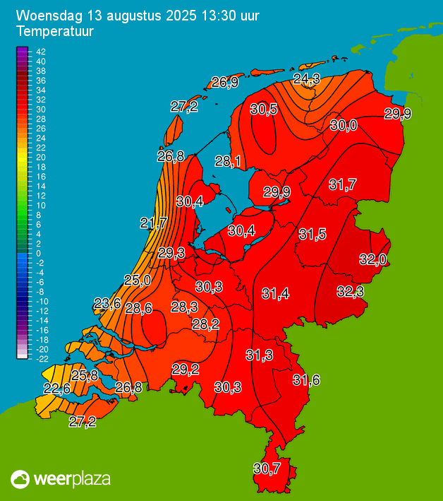 Eerder 30 graden hier dan in Gilze-Rijen, dat had ik niet verwacht.