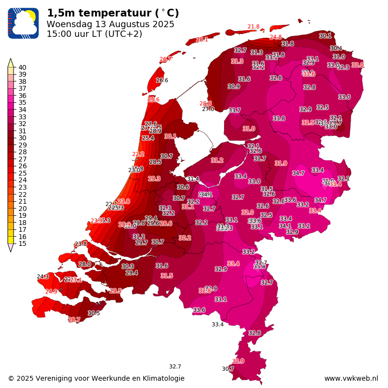 Tact: 33,5°C. Hittegolf zoals men dat noemt.