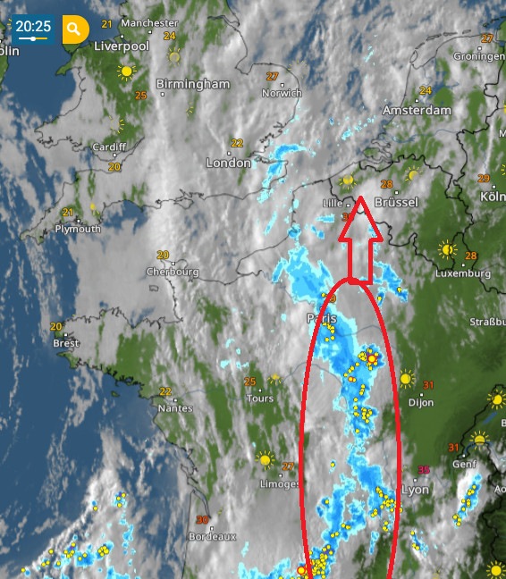 Het westen van België en de westkust van Nederland hebben een grote kans op onweersbuien vanavond en vannacht Ook de Guidance noemt dit, dus dat is positief.