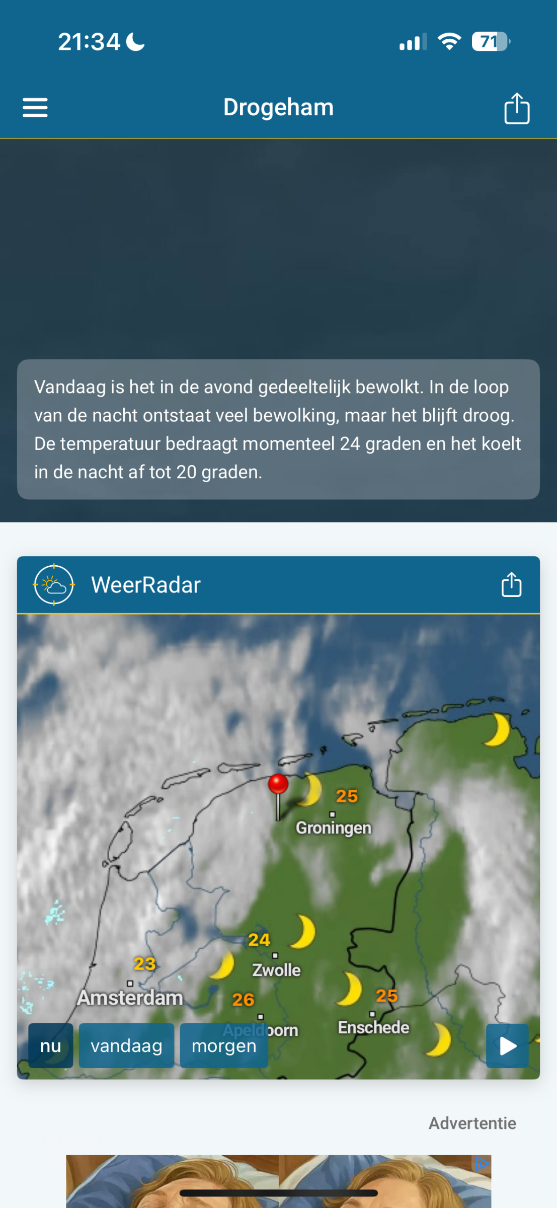 Ik ben op zoek naar een app die behalve de neerslag ook de bewolking laat zien in hetzelfde beeld (zie afbeelding). In mijn zoektocht stuitte ik op de app Weer & Radar die echter heul veel reclame heeft. Is het de moeite waard deze app aan te schaffen?