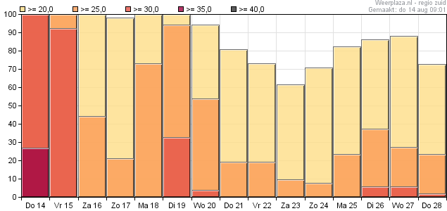 Nieuwe warmtepiek volgende week wat minder uit de verf.