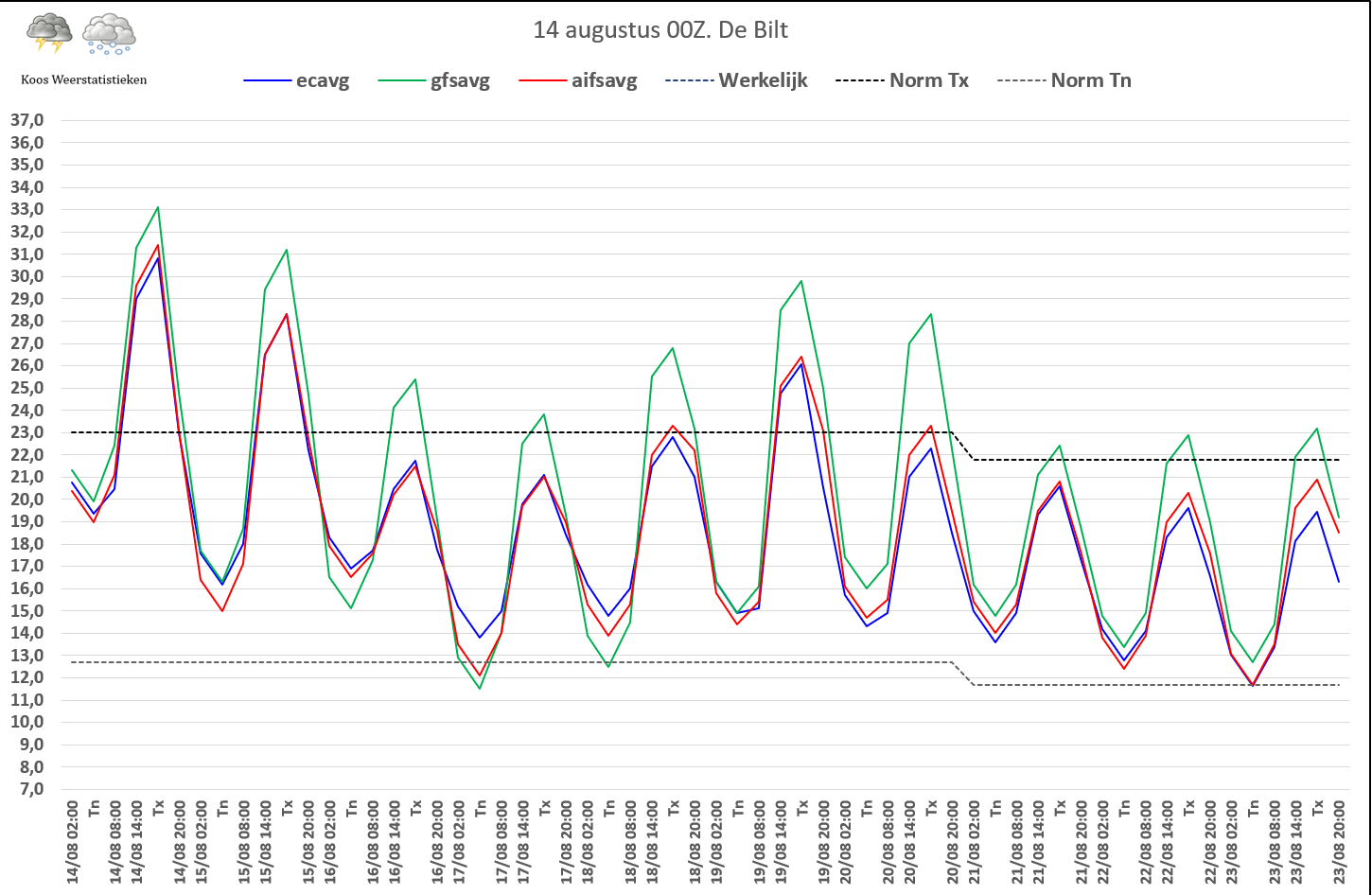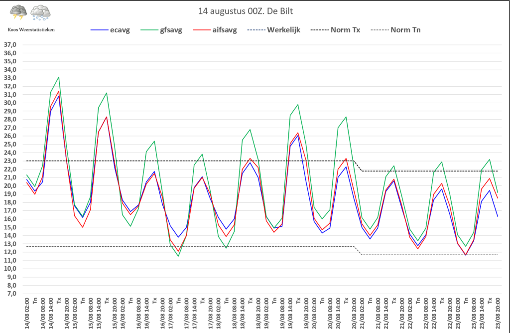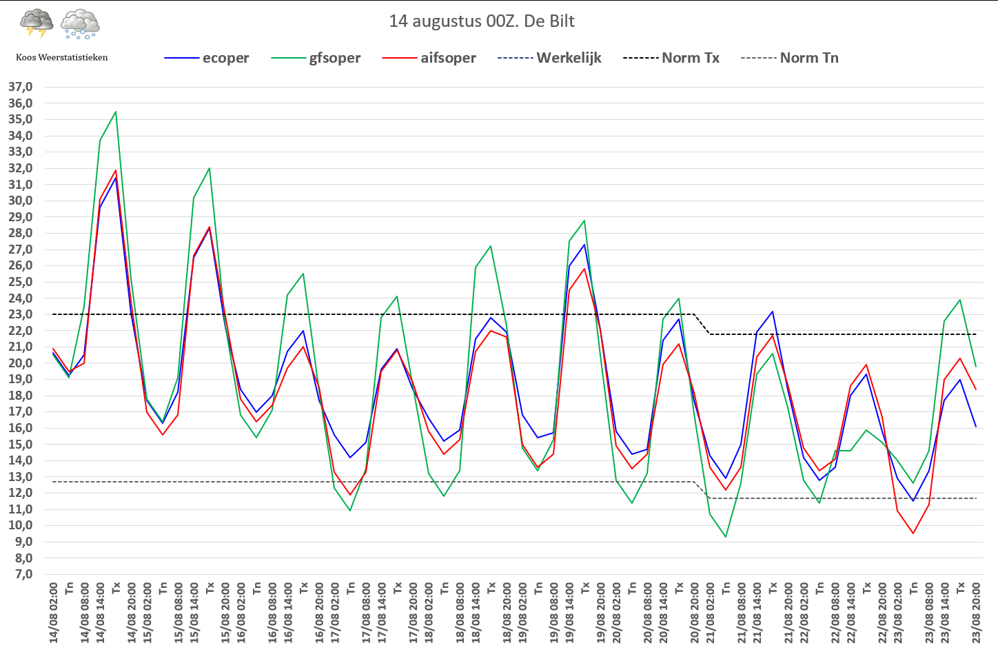 Bij EC en AIFS lijkt op diverse dagen de Tx zelfs onder de normaal te blijven