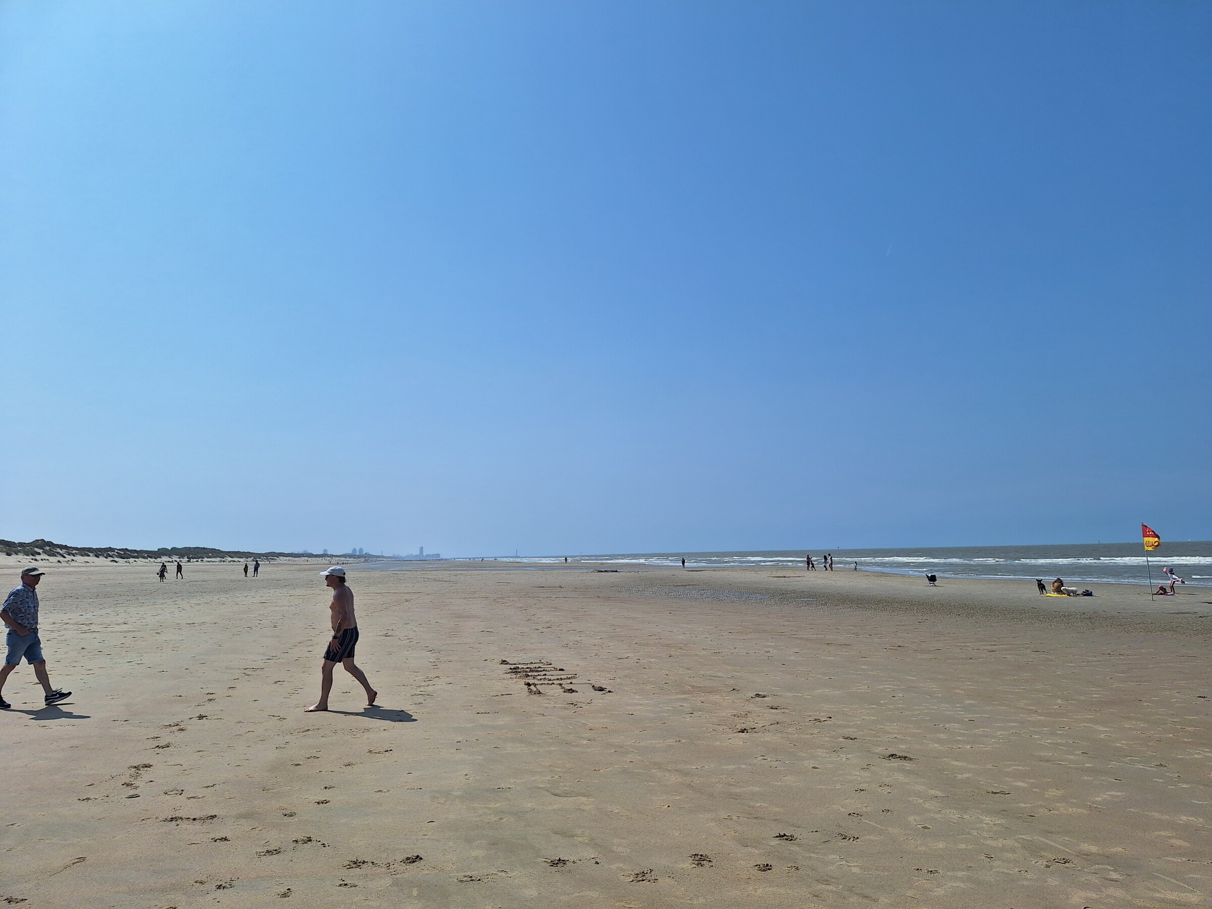 13u40 strand De Haan Vosseslag volle zon en heerlijk. Water was warm super.