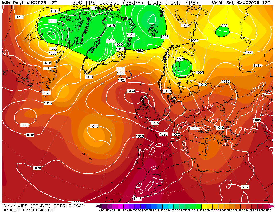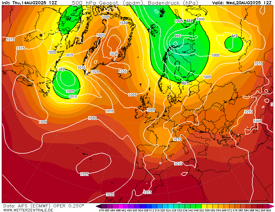 AIFS-oper 12Z komt ook met het hoog boven Groenland