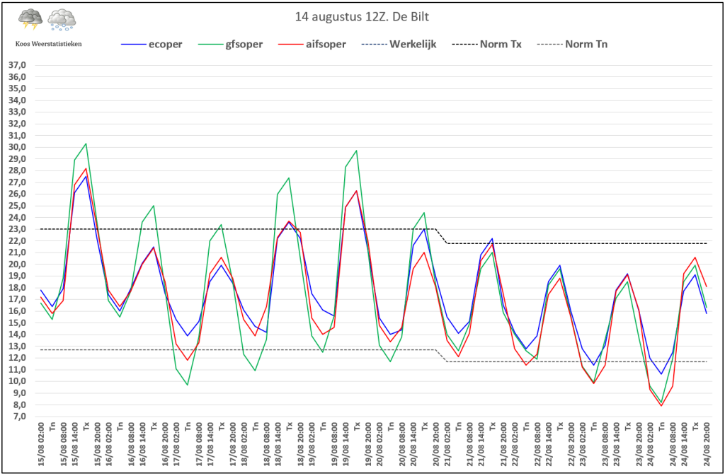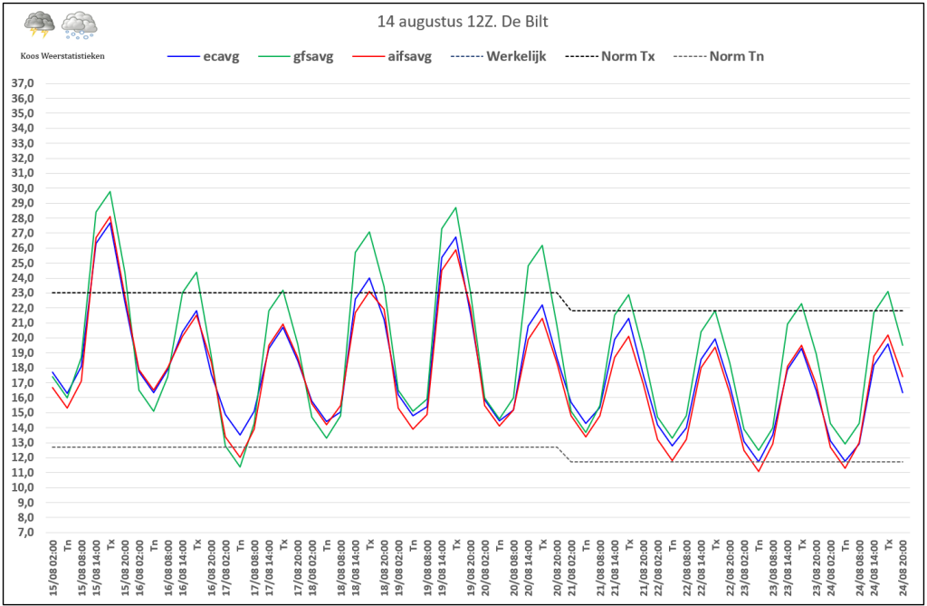 GFS oper/ens blijft volharden in een stukken warmer scenario dan EC en AIFS. Gezien de prestaties van GFS (vooral de oper) geef ik toch de voorkeur aan EC/AIFS. En dan komen we op diverse dagen niet aan de normaal voor de Tx...