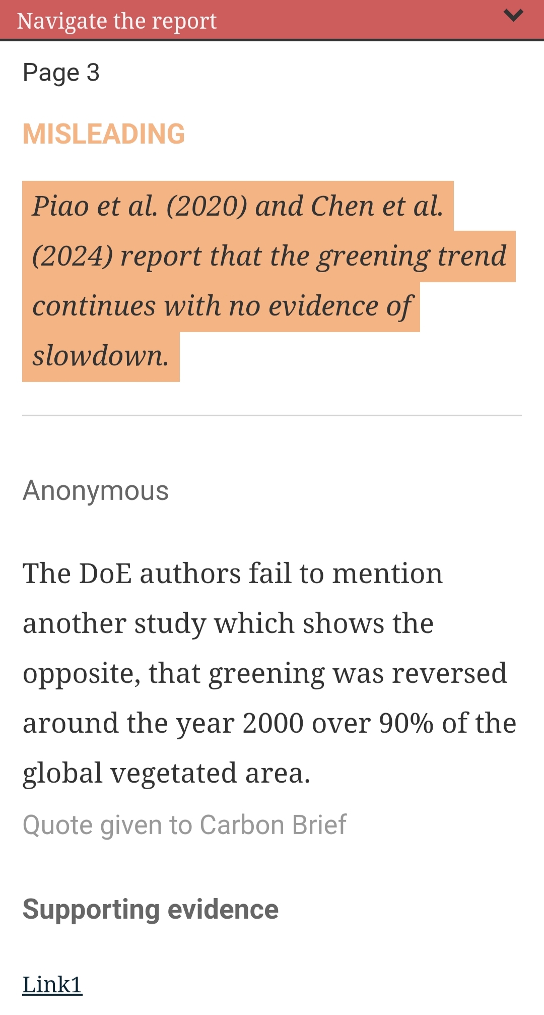 Die CarbonBrief factcheck lijkt hetzelfde te doen als waar ze het DOE rapport van beschuldigen. Zie bijvoorbeeld het onderstaande stuk over een ontbrekende referentie.