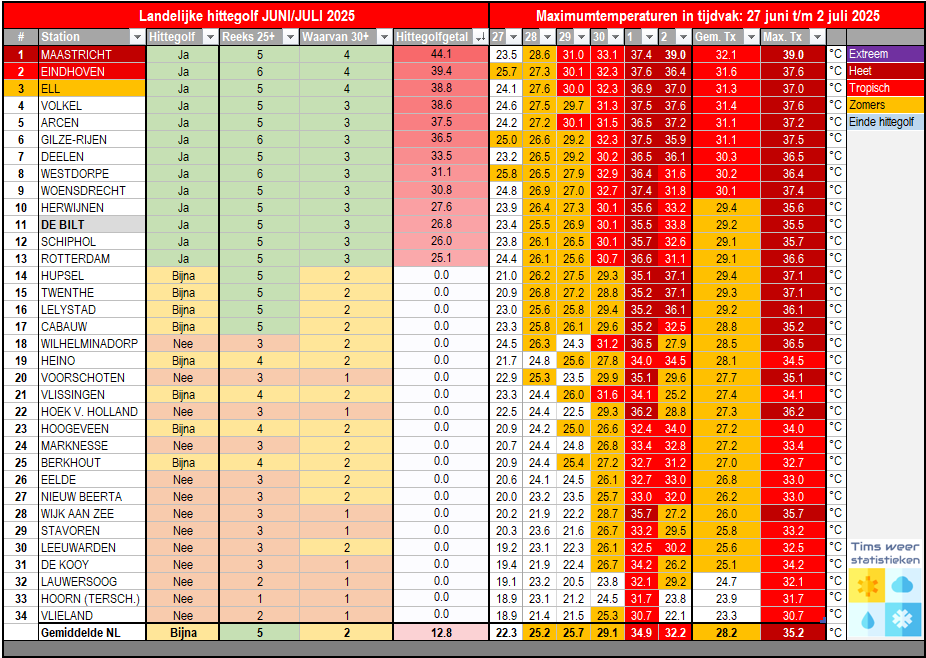 Versie geüpdatet met Schiphol als 16e hittegolfstation
