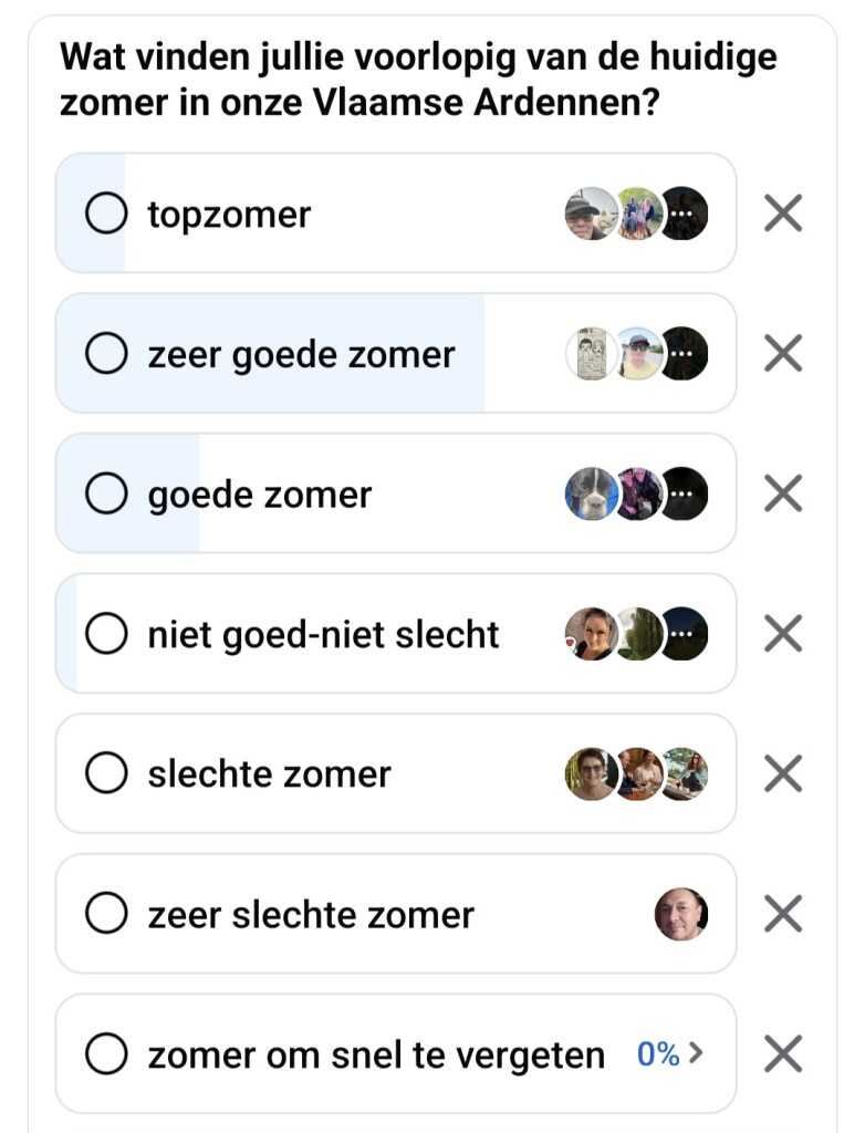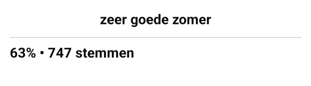 Daarbij dient wel gezegd worden dat ik veel reacties gekregen heb van mensen die voor "goede zomer" of "niet goed-niet slecht" gekozen hebben, omdat het regelmatig te warm was. Niet mijn persoonlijk gedacht dus maar wel van de mensen die ik bevraagd heb.