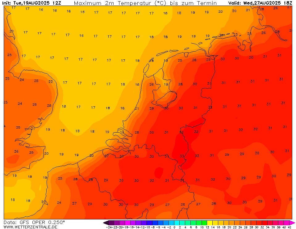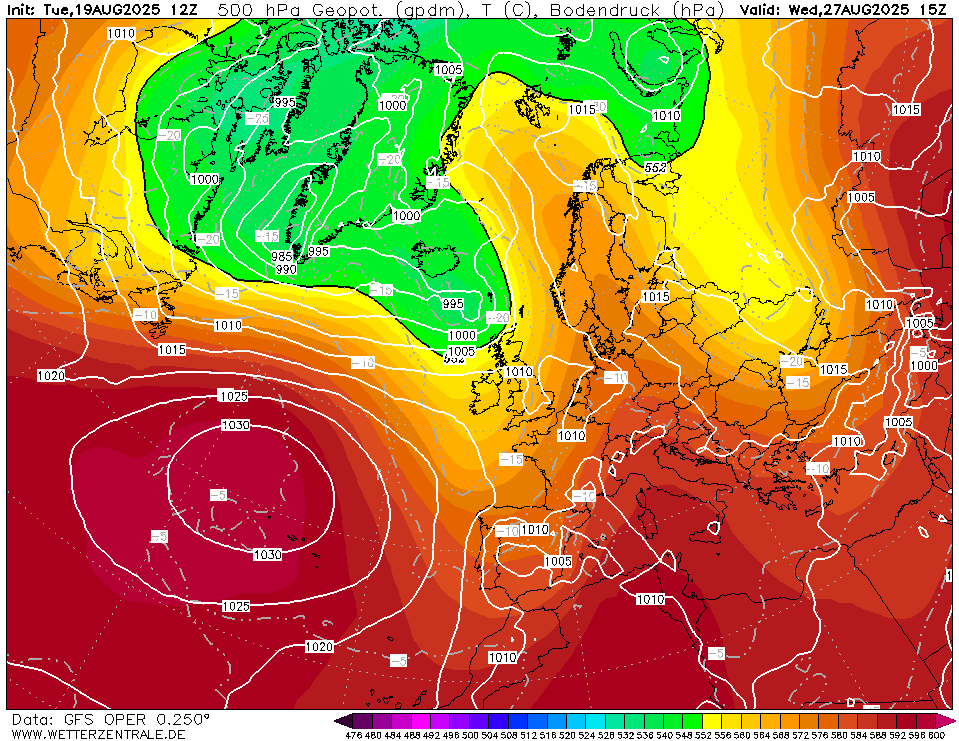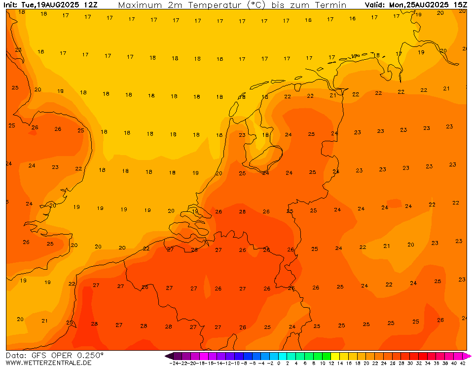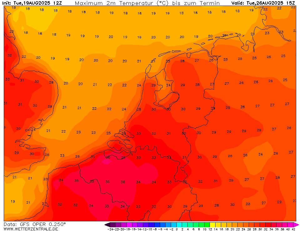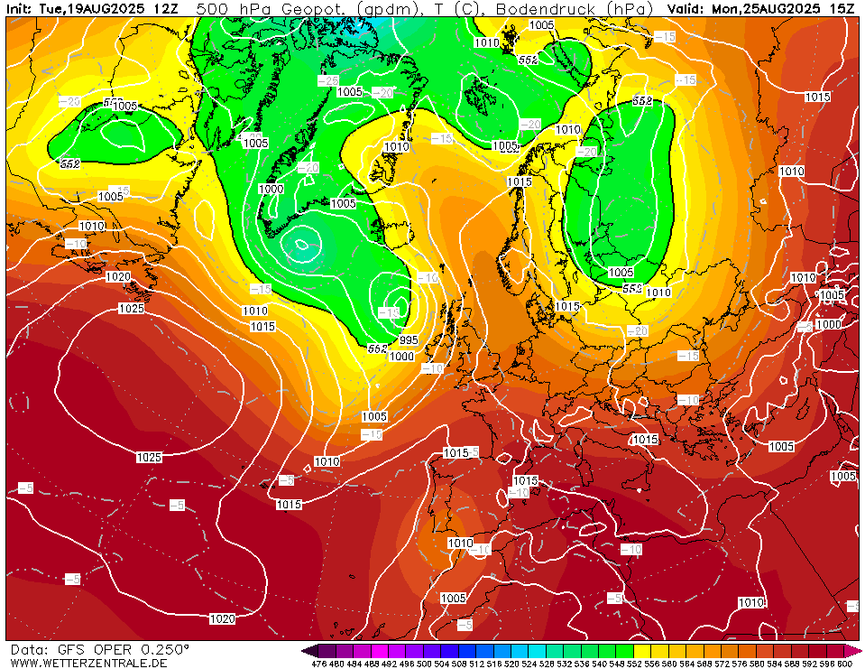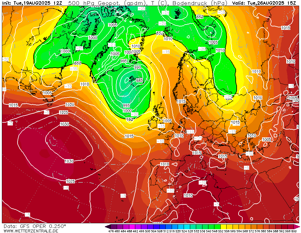 Deze zomer is dat een goede vuistregel gebleken bij GFS operkaarten