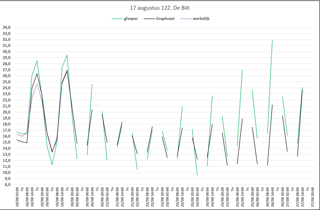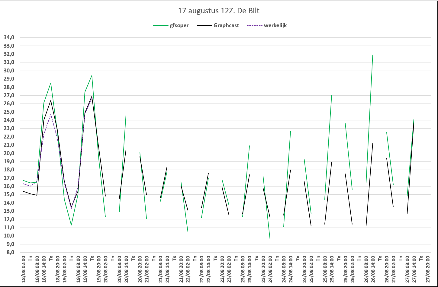 Gezamenlijke GFS Opers zaten een graad te hoog vandaag - De Bilt